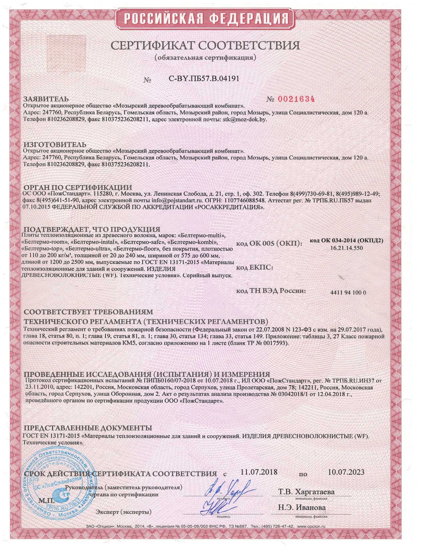 Подтвержденное сертификатами и действующими ГОСТ